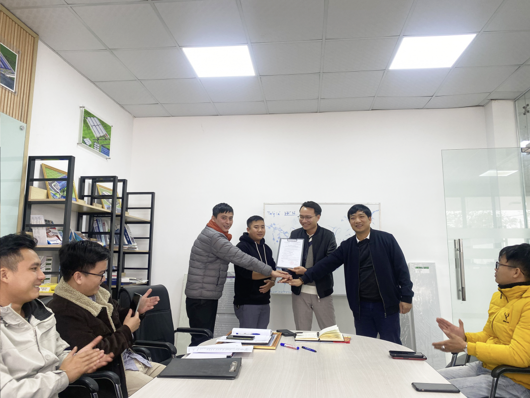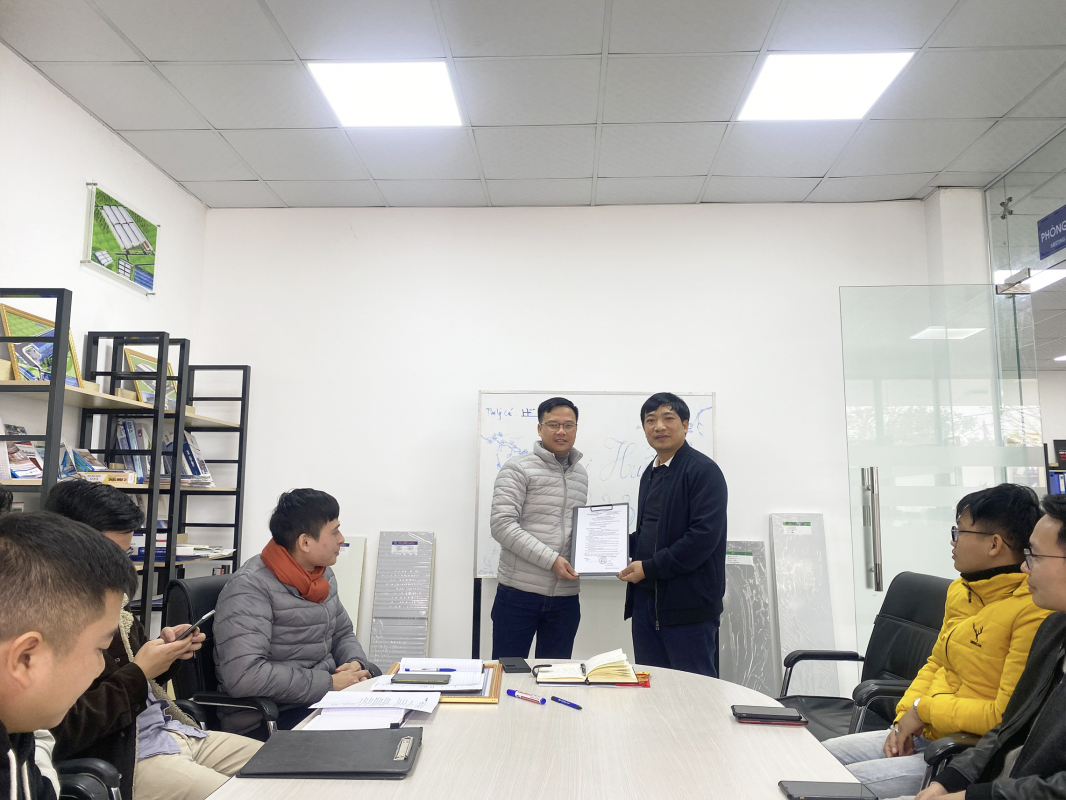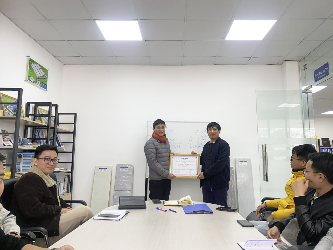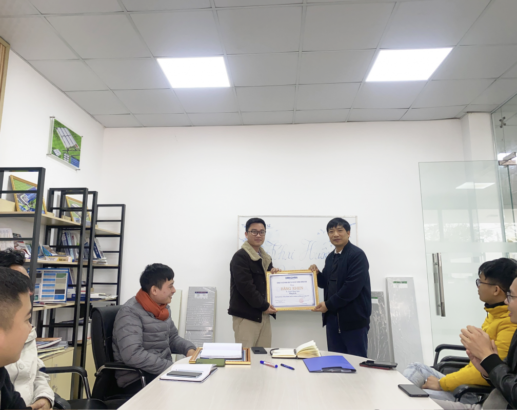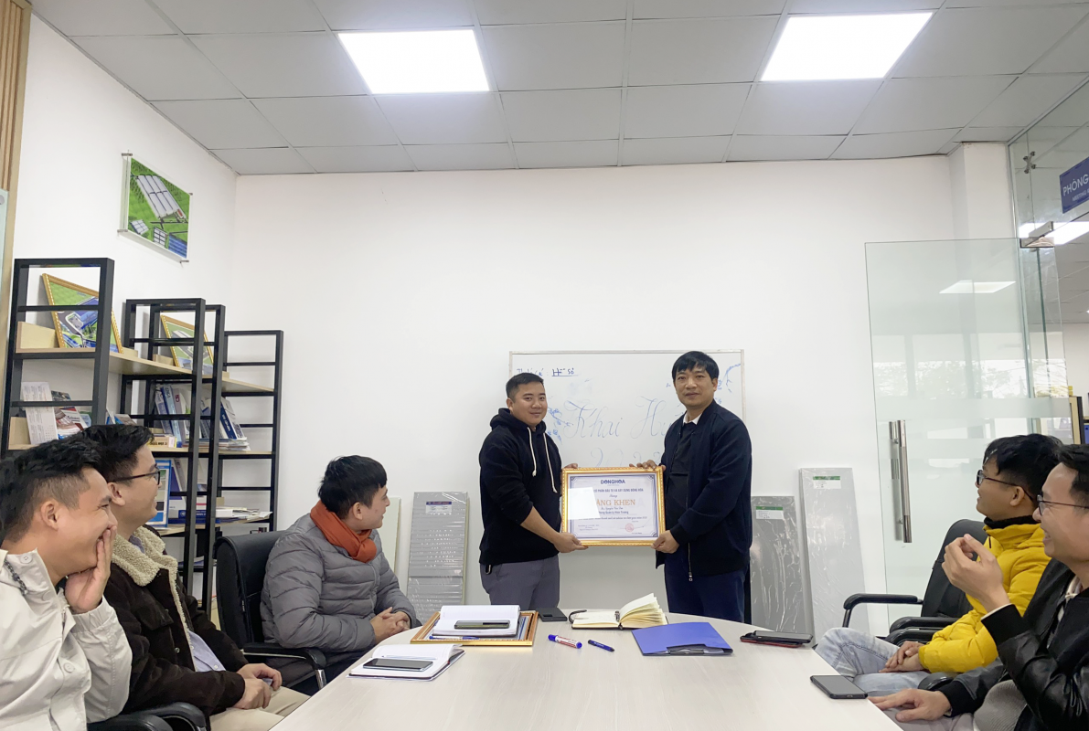 Giám Đốc Công Ty trao bằng khen cho đại diện phòng Dự Án tập thể đã có thành tích hoàn thành xuất sắc nhiệm vụ được giao năm 2022